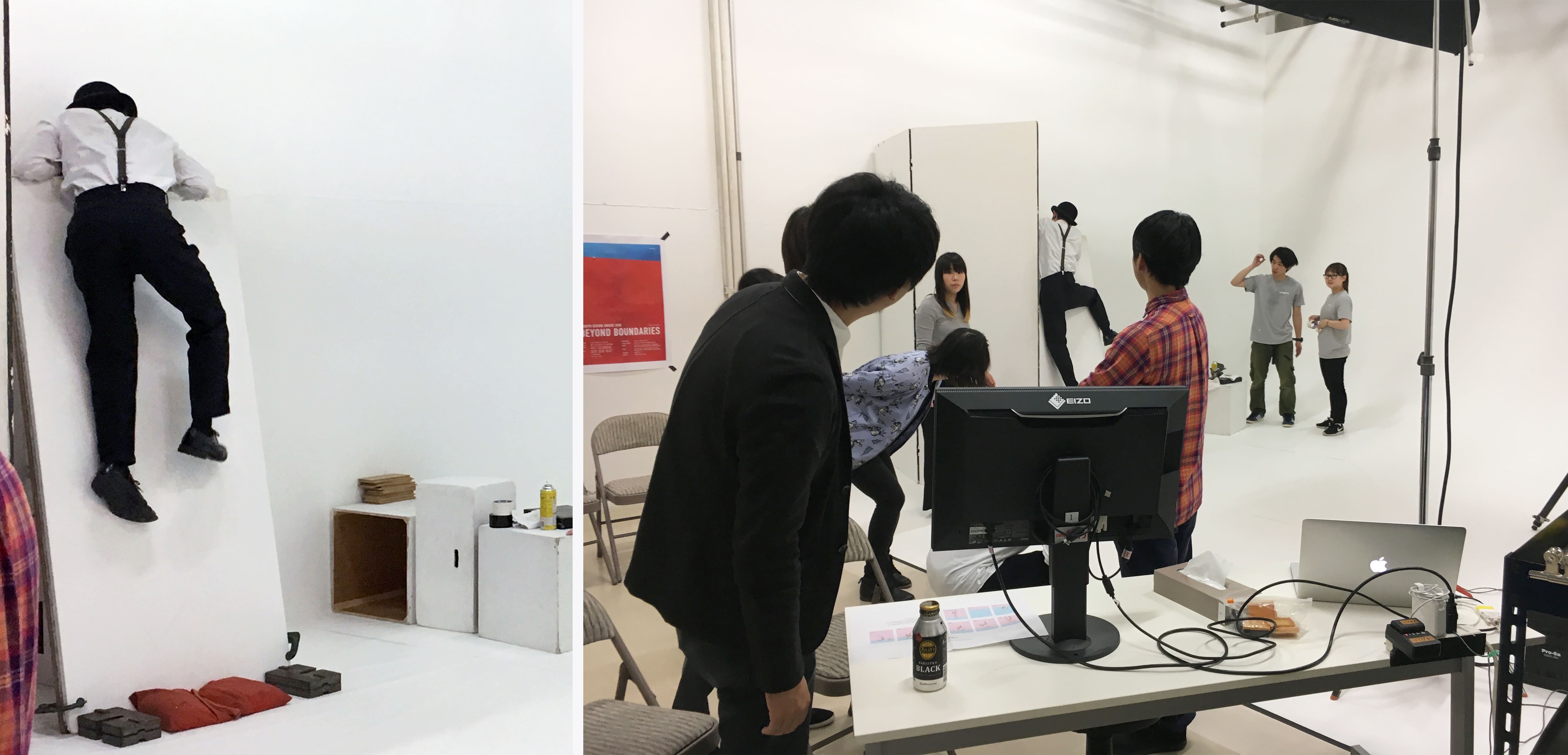 スタジオに壁をつくり、モデルに本気でよじ登ってもらった