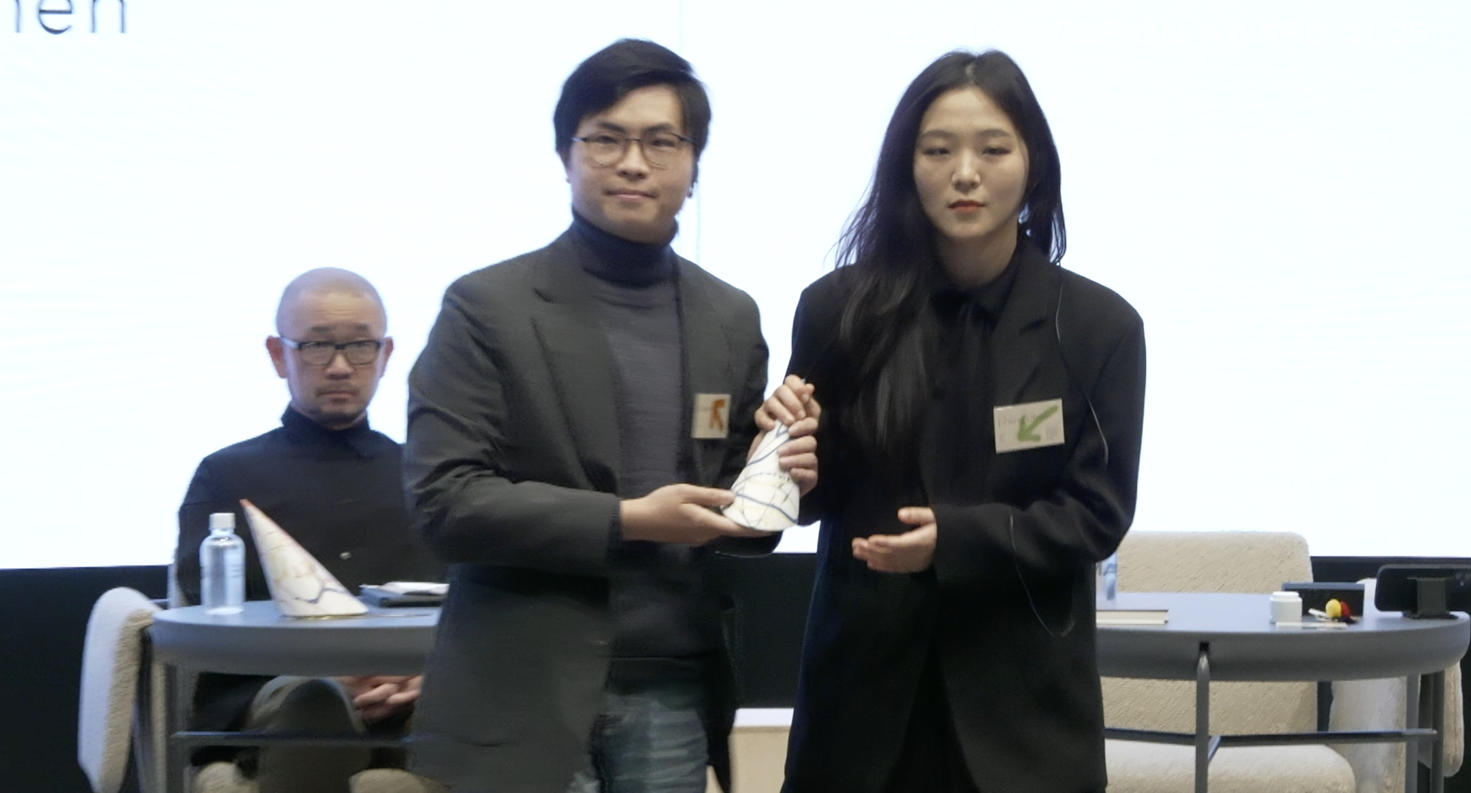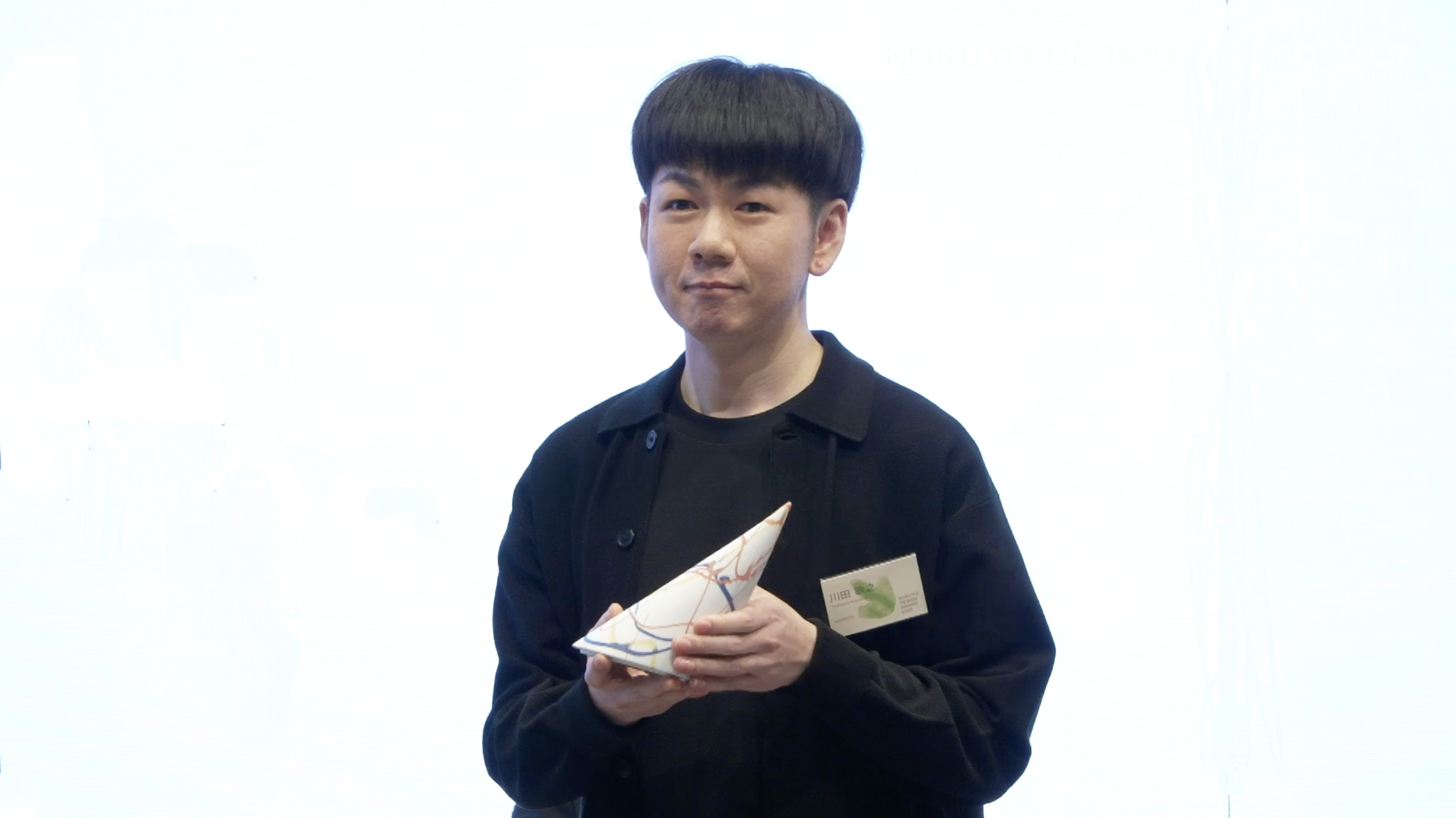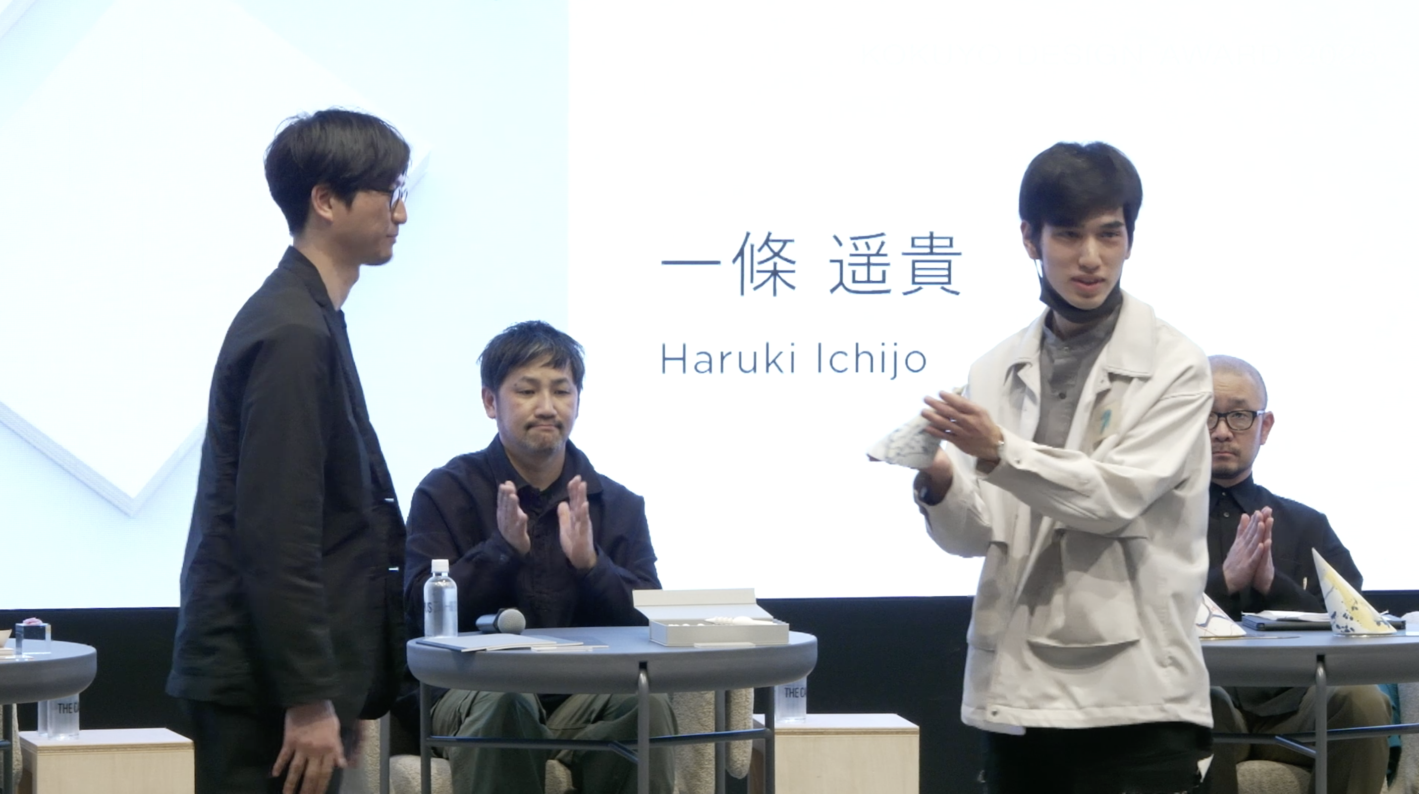 マグネットのかぎかっこで強調することで、情報に感情を与えたのが松村佳宙さんの「KAKONET」です。コミュニケーションをデザインする純粋な視点と、作者の人柄がにじみ出たプレゼンテーションが審査員の心を動かします。一方で、かぎかっこの形状に検討の余地があるとの指摘もありました。松村さんも「形やサイズ感、質感は迷いました」と振り返りました。マグネットというアイテムにとどまらず、誰かが誰かのために何かをセットするという可能性が広がる作品でした。
