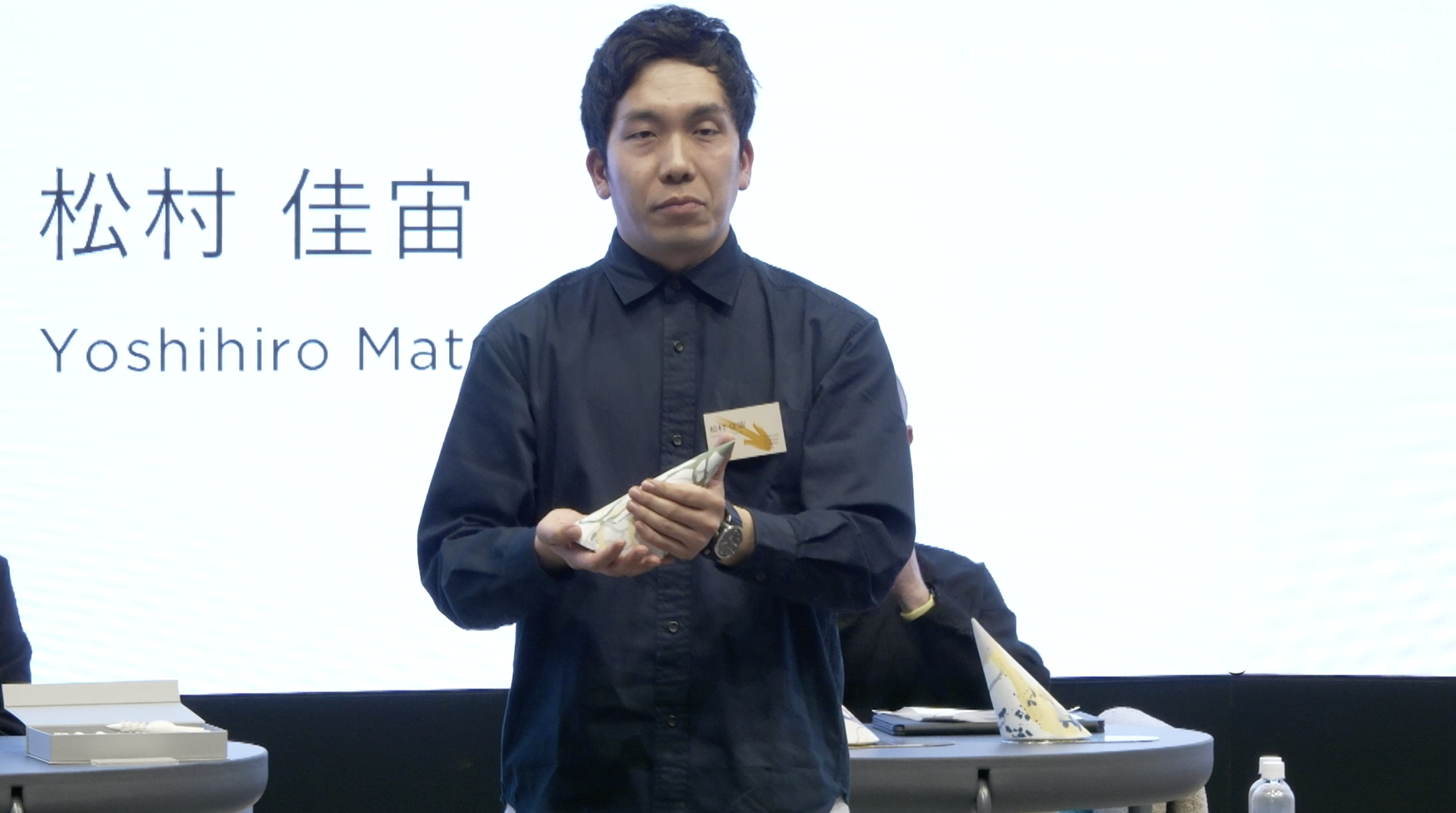 そのほか、ファイナリストの作品も力作が揃っていました。2年連続ファイナリストの山田泰之さんの「Universal sticker」には、「ユニバーサルなギャップだけでなく、もっと可能性がありそう」。HASNICCA(小久保駿也さん、中平勁士郎さん、武富龍之介さん)の「Campus Cardboardpad」には、「新しいクラフトの提案として画期的だが、まだデザインの余地がある」。岩﨑由紀子さん、松岡諒さんの「マテリアルタグパンチ」には、「人の感情に訴える美しい提案。ただ集める行為に少し無理がある」。いずれも優れたデザインでありながら、惜しくも優秀賞に届かなかった点も語られました。
