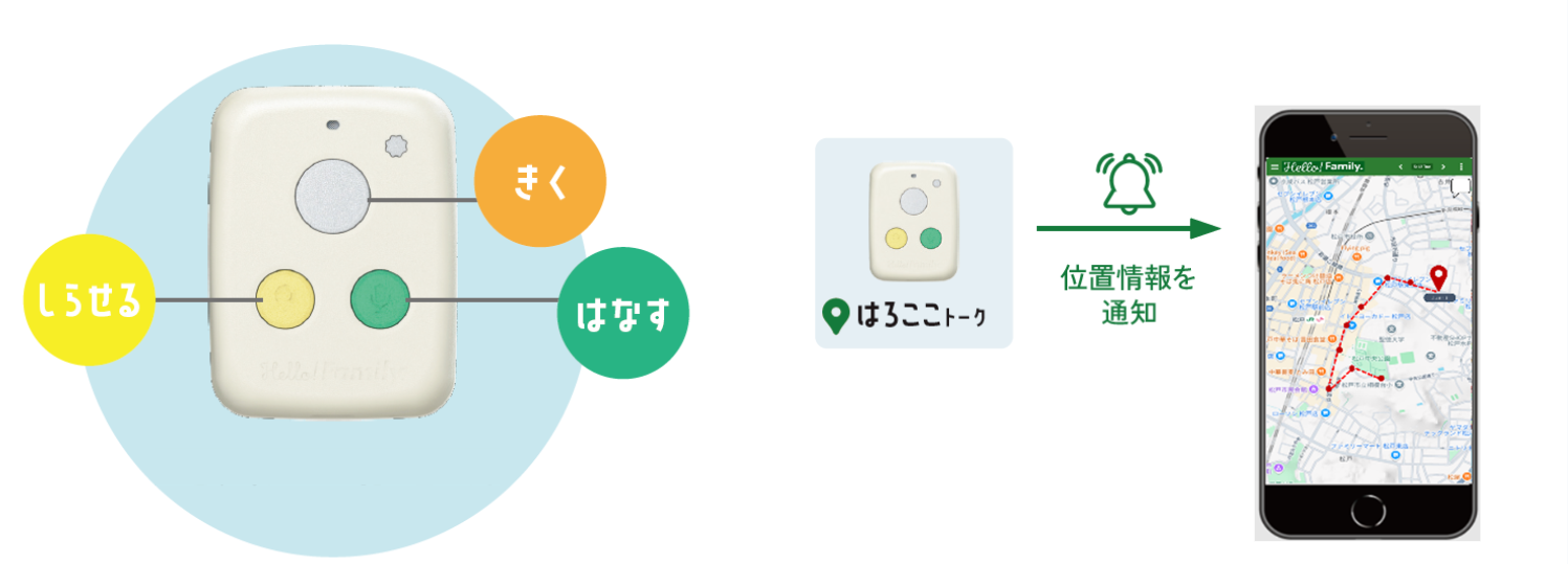 使用デバイス: はろここ(GPS機能)、はろたぐ(忘れ物防止)、はろもに(タスク管理)、はろぽち(時間管理)