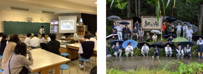 - 自然林、人工林については探究の時間に少し調べましたが、探究の時間には調べられなかった部分をこの授業で調べることができました。近隣の山で自生している主な木の種類や結の森にある植物の名称について学びました。山登りの経験があまり無いので次回の授業が楽しみです。