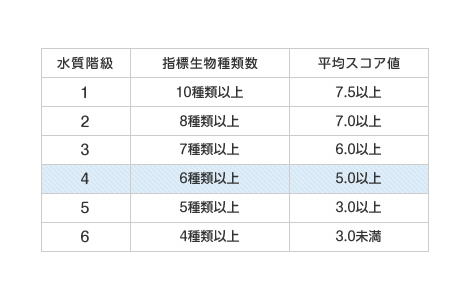 水生生物について(水質階級判定基準)